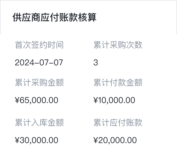 管理供应商档案,支持供应商准入审批、废弃等流程,自动统计供应商交易数据和应付账款。
